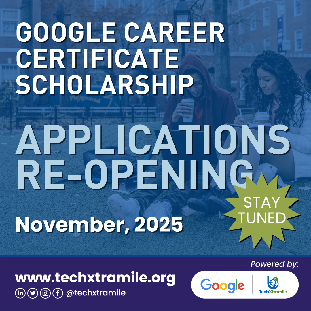 2025/2026 APPLICATION IS NOW CLOSED! Hi TechXtramile Community! If you are on this page, it means the Google Career Certificate Scholarship 2025/2026 applications are closed for this application period. We thank you for your interest in the programme, and encourage...